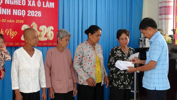 Cùng ngày 04/02/2026 Ủy ban Mặt trận Tổ quốc Việt Nam xã Ô Lâm cũng tiếp nhận và trao 100 phần quà cho hộ nghèo, hội viên các hội đoàn thể khó khăn, mỗi phần quà gồm nhu yếu phẩm và bánh mứt, trị giá 500 nghìn đồng. Tổng trị giá các phần quà là 50 triệu đồng do công ty Cổ phần Xây dựng và Thương mại Đông Nam Á tài trợ.