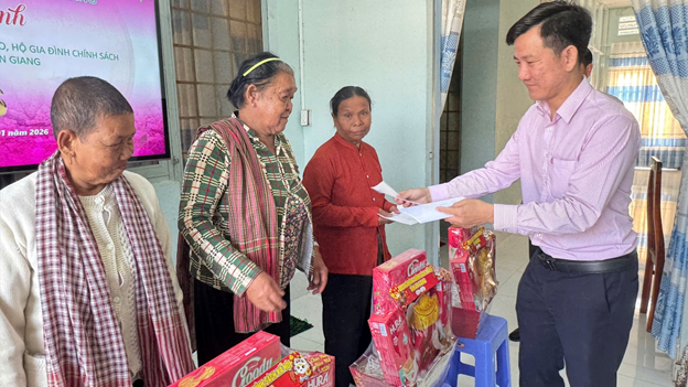 Nhằm mang đến niềm vui và không khí xuân ấm áp cho người dân vùng đồng bào dân tộc Khmer, sáng ngày 30/1/2026  Công đoàn cô sở Ngân hàng chính sách xã hội An Giang kết hợp cùng Ủy ban Mặt trận Tổ quốc Việt Nam xã Ô Lâm tổ chức chương trình tăng quà tết cho hộ nghèo, cận nghèo, gia đình chính sách trên địa bàn xã.
