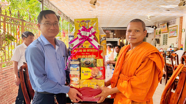 Dịp này Phó bí thư Đảng ủy, Chủ tịch UBND xã Ô Lâm Phan Thanh Lương gửi tặng mỗi chùa và 03 người có uy tín, gia đình chính sách tiêu biểu phần quà và lời chúc đón lễ Sen Đônta vui tươi, đầm ấm, hạnh phúc, an toàn, tiết kiệm.