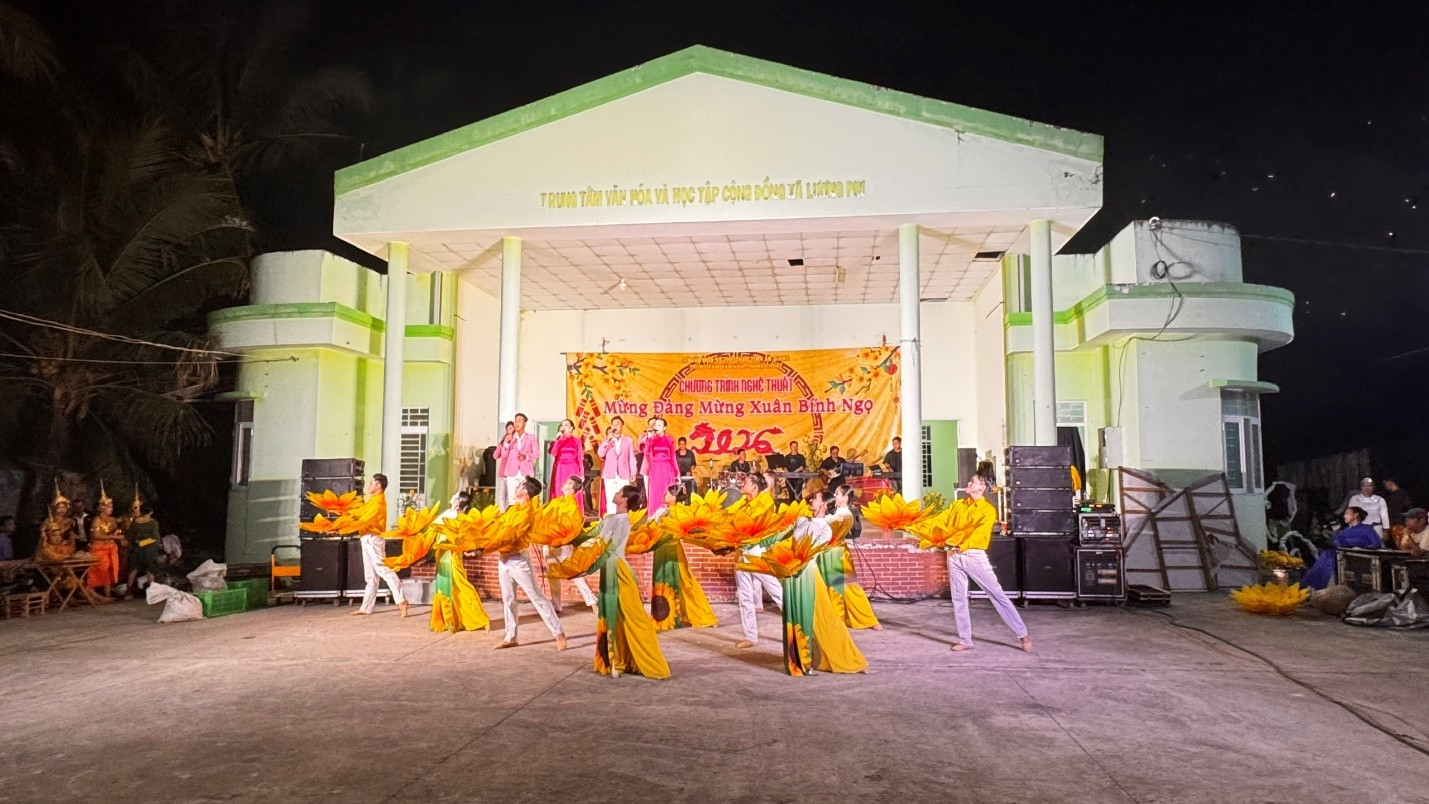 Tối ngày 10/02/2026, tại Trung tâm Dịch vụ Tổng hợp xã Ô Lâm, Trung tâm Văn hóa Nghệ thuật tỉnh An Giang phối hợp cùng Đoàn Nghệ thuật Khmer tỉnh và UBND xã Ô Lâm tổ chức chương trình nghệ thuật đặc biệt mừng Đảng, mừng xuân Bính Ngọ với chủ đề “An Giang chào xuân mới”.  Đây là hoạt động thiết thực nhằm mang lại không khí Tết ấm áp, sôi động cho bà con vùng đồng bào dân tộc và miền núi nhân dịp Xuân Bính Ngọ.