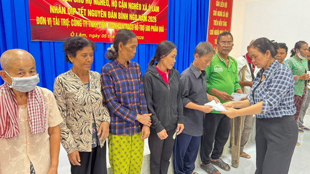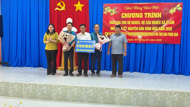 Nhân dịp Tết Nguyên đán cổ truyền của dân tộc, chiều ngày 05/02/2026 Công ty TNHH Liên doanh Antraco phối hợp với Đảng ủy, UBND và Ủy ban Mặt trận tổ quốc Việt Nam xã Ô Lâm, Tỉnh An Giang tổ chức chương trình trao quà tết cho hộ nghèo, hộ cận nghèo đồng bào dân tộc Khmer trên địa bàn xã. Tham dự có đồng chí Mai Thị The, Bí thư Đảng ủy xã, Chủ tịch HĐND xã.