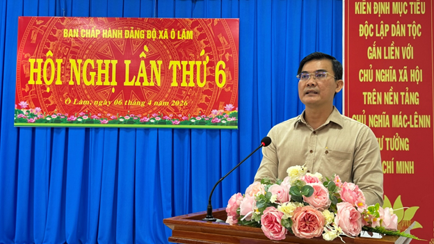 Sáng ngày 6/4/2026, Ban chấp hành Đảng bộ xã Ô Lâm tổ chức Hội nghị lần thứ 6 nhằm sơ kết tình hình thực hiện nhiệm vụ chính trị quý I và triển khai nhiệm vụ quý II năm 2026. Đến dự hội nghị có đồng chí Nguyễn Văn Cọp – Tỉnh ủy viên, Phó Chủ tịch Ủy ban MTTQ Việt Nam tỉnh, Chủ tịch Hội Nông dân tỉnh An Giang.