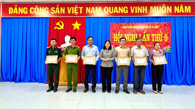 Dịp này Đảng ủy xã Ô Lâm cũng khen thưởng cho 5 đảng viên hoàn thành xuất sắc nhiệm vụ 5 năm liền, khen thưởng 6 chi đảng bộ và 20 đảng viên hoàn thành xuất sắc nhiệm vụ năm 2025.