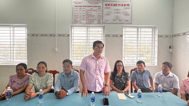 Đại diện Trạm Y tế xã đã báo cáo nhanh về tình hình hoạt động của đơn vị, hiện Trạm có 25 y bác sĩ, gồm 2 phòng, 3 khoa. Ngoài trụ sở chính tại ấp Ninh Hòa, trạm còn có 2 điểm phụ tại ấp Phước Lợi và An Ninh. Bình quân mỗi tháng, Trạm tiếp nhận khám và điều trị cho 600 lượt người. Từ đầu năm đến nay, đơn vị đã điều trị 8 ca sốt xuất huyết và tay chân miệng, đồng thời triển khai kiểm tra an toàn thực phẩm dịp Tết Nguyên đán.