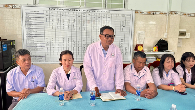 Thay mặt đoàn, Phó Bí thư Thường trực Đảng ủy xã, Tiêu Đình Hiếu Nhân Trung gửi lời chúc tốt đẹp nhất và biểu dương những nỗ lực của đơn vị trong công tác chăm sóc sức khỏe nhân dân thời gian qua. Dù điều kiện cơ sở vật chất còn khó khăn, tập thể Trạm vẫn luôn đoàn kết, thực hiện tốt công tác khám chữa bệnh ban đầu, tiêm chủng và phòng chống dịch bệnh và tuyên truyền nâng cao ý thức chăm sóc sức khỏe cho người dân. Với địa bàn có đông đồng bào dân tộc Khmer, vai trò của y tế cơ sở là đặc biệt quan trọng. Trong thời gian tới, đội ngũ y tế cần tiếp tục phát huy y đức, nâng cao chuyên môn và làm tốt công tác y tế dự phòng, chăm sóc sức khỏe ban đầu cho Nhân dân,
