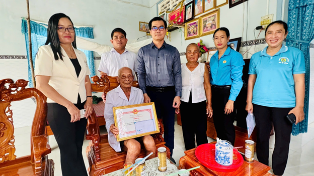 Tại các gia đình, lãnh đạo xã đã ân cần thăm hỏi sức khỏe, động viên tinh thần, bày tỏ sự trân trọng các cụ trong phát huy giá trị truyền thống gia đình Việt Nam, giữ gìn bản sắc văn hóa khmer,  xây dựng phum sóc không ngừng phát triển. Đoàn cũng trao tặng thiệp chúc thọ, phần quà và gửi lời chúc các cụ sống vui, sống khỏe, sống hạnh phúc và trường thọ. Mong muốn con cháu tiếp tục phát huy truyền thống, chăm sóc, phụng dưỡng tốt để các cụ sống vui, sống khỏe, sống thọ cùng con cháu.