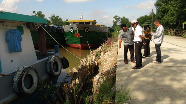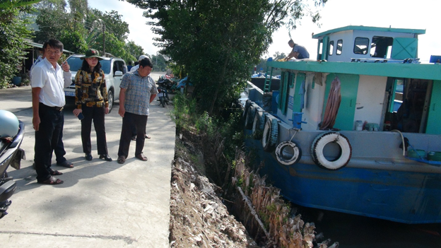 Đoàn khảo sát tuyến đường bê tông cặp kênh Tám Ngàn, thuộc ấp An Lương, đoạn từ cầu vượt số 2 đến cầu vượt số 1 tiếp giáp với xã Tri Tôn. Khu vực này có trên 1.000 mét hành lang bảo vệ đường bị sạt lở, có đoạn ăn sâu vào đất đá dưới lớp bê tông mặt đường khoảng 10 cm. Đây là khu vực tập trung các sà lan trọng tải lớn đậu đỗ vận chuyển đá xây dựng. Khi các phương tiện thủy khác lưu thông qua lại tạo dòng áp lực nước va đập vào lề đường, tạo ra sạt lở. Một số đoạn đã được gia cố bằng cừ tràm.