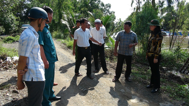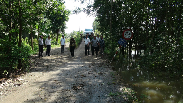 Đoàn đã khảo sát điểm sụp lúng tuyến đường bê tông cặp kênh Tám Ngàn gần khu vực cầu 19, chiều dài khoảng 70 mét, chỗ lún sâu nhất khoảng 1,5 mét, có đoạn gần 20 mét mực nước xâm sấp mặt đưởng. Khảo sát tuyến đường bê tông vào Thốt nốt Trái Tim có khoảng 10 mét bị nước tràn qua mặt đường, độ sâu khoảng 15 - 20 cm, Bí thư Đảng ủy, Chủ tịch HĐND xã đề nghị phòng chuyên môn liên hệ các đơn vị chiết tính kinh phí nâng cấp và vận động nhân dân đắp bao cát gia cố.