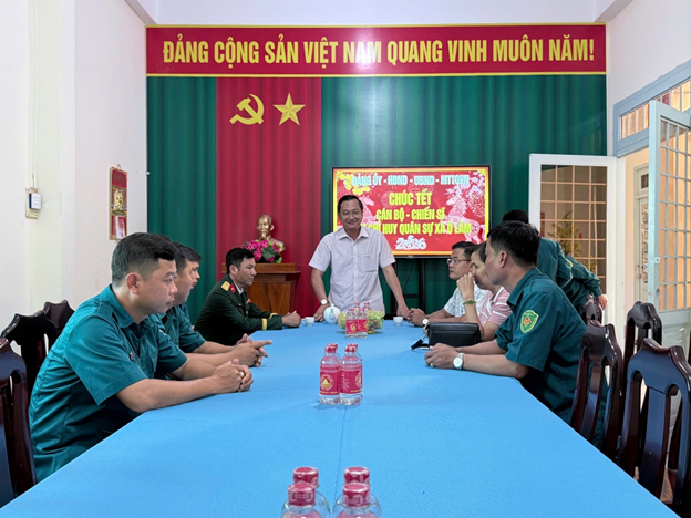 Đến thăm lực lượng công an, quân sự, lãnh đạo xã đã ân cần thăm hỏi, biểu dương tinh thần trách nhiệm của lực lượng Công an, Quân sự, dân quân tự vệ và lực lượng bảo vệ an ninh trật tự cơ sở. Các đồng chí đã gác lại niềm vui sum họp gia đìnhvì hạp phúc chung, bảo vệ bình yên cho nhân dân vui Xuân, đón Tết an toàn.