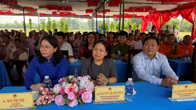 Buổi lễ vinh dự đón tiếp đồng chí Nguyễn Tiếc Hùng, Nguyên Ủy viên Ban Thường vụ Tỉnh ủy, Trưởng ban Nội chính Tỉnh ủy. Đồng chí Nguyễn Văn Cọp, Tỉnh ủy viên, Phó Chủ tịch Ủy ban MTTQ Việt Nam tỉnh, Chủ tịch Hội Nông dân tỉnh. Đồng chí Trương Thanh Thúy: Phó Chủ tịch Ủy ban MTTQ Việt Nam tỉnh, Chủ tịch Hội Liên hiệp Phụ nữ tỉnh. Ông Danh Tha, Phó Giám đốc Sở Dân tộc tỉnh. Ông Huỳnh Tấn Phi, Phó Giám đốc Sở Nội vụ tỉnh. Đại tá Ngô Tiến Cường, Phó Sư đoàn trưởng, Sư đoàn 330. Thượng tá Nguyễn Ngọc Thành, Phó Chính ủy Lữ đoàn Tăng thiết giáp 416. Hòa thượng Chau Sơn Hy, Phó Trưởng Ban Trị sự giáo hội Phật giáo Việt Nam tỉnh An Giang.