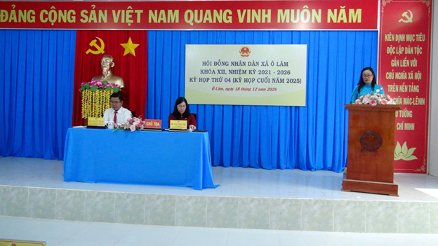 Ngày 18/12/2025 HĐND xã Ô Lâm nhiệm kỳ 2021 - 2026 tổ chức kỳ họp thứ 4 cuối năm 2025 nhằm đánh giá tình hình thực hiện nghị quyết năm 2025, tình hình phát triển kinh tế xã hội gian đoạn 2021 - 2025, phương hướng nhiệm vụ giai đoạn 2026 - 2021 và giải quyết môt số nội dung quan trọng. Tham dự có bí thư Đảng ủy, Chủ tịch HĐND xã, Mai Thị The; Phó Bí thư thường trực Đảng ủy xã, Tiêu Đình Hiếu Nhân Trung; Phó bí thư Đảng ủy, Chủ tịch UBND xã, Phan Thanh Lương.