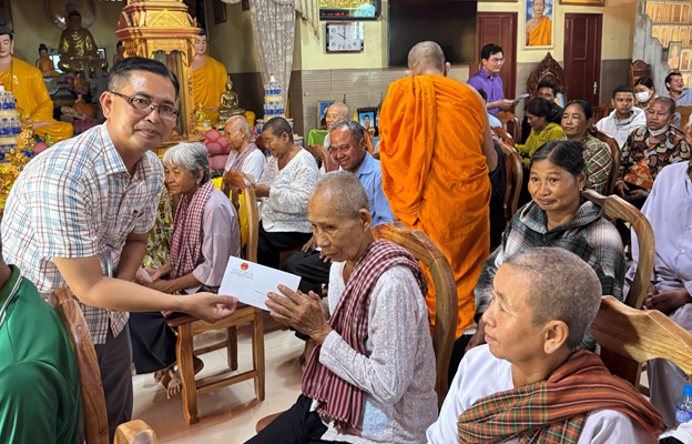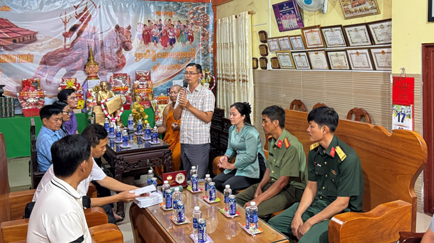 Dịp này, Đoàn gửi quà chúc mừng Hòa thượng Chau Sơn Hy, trao tặng 12 phần quà cho người có uy tín trong vùng đồng bào dân tộc và 50 hộ bà con Khmer có hoàn cảnh khó khăn trên địa bàn xã, mỗi phần quà trị giá 1 triệu đồng. Thể hiện sự quan tâm của Đảng và Nhà nước đối với đời sống vật chất, tinh thần của đồng bào dân tộc thiểu số.