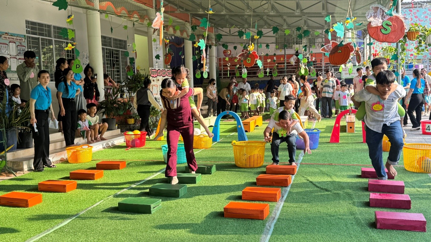 TRƯỜNG MẪU GIÁO LƯƠNG PHI TỔ CHỨC HỘI THI BA MẸ CÙNG CON AN TOÀN ĐẾN TRƯỜNG