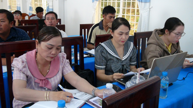 Tại buổi tập huấn, cán bộ phụ trách chuyển đổi số đã giới thiệu tổng quan về nền tảng Cổng dịch vụ công quốc gia và Cổng dịch vụ công quốc gia, hướng dẫn cụ thể cách tạo tài khoản, đăng nhập, lựa chọn thủ tục, nộp hồ sơ, ký số và tra cứu kết quả trực tuyến. Bên cạnh phần lý thuyết, các học viên được thực hành trực tiếp trên máy tính và điện thoại thông minh quy trình cấp bản sao trích lục hộ tịch, bản sao giấy khai sinh, đảm bảo nắm vững quy trình thao tác để có thể hỗ trợ người dân tại địa bàn.