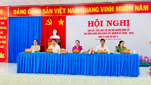 Chiều ngày 10/3/2026 tại xã Ô Lâm, Ủy ban Mặt trận tổ quốc Việt Nam tỉnh An Giang kết hợp cấp ủy, chính quyền 2 xã Ô Lâm và Vĩnh Gia, tổ chức cho 05 ứng cử viên đại biểu Quốc hội khóa XVI, đơn vị bầu cử số 03 tỉnh An Giang (gồm Ông Phạm Ngọc Hải - Ủy viên Ban Thường vụ Đảng ủy, Ủy ban Quốc phòng, An ninh và Đối ngoại, Vụ trưởng Vụ Quốc phòng, An ninh và Đối ngoại thuộc Ủy ban Quốc phòng, An ninh và Đối ngoại của Quốc hội. Ông Hồ Đức Thắng - Bí thư chi bộ, Viện trưởng Viện Công nghệ số và Chuyển đổi số quốc gia, Bộ Khoa học và Công nghệ. Bà Võ Ngọc Bích - Ủy viên Ban Chấp hành Đảng bộ, Phó Trưởng phòng Hậu cần, Công an tỉnh An Giang. Bà Phạm Huỳnh Thanh Vân - Phó Trưởng khoa Nông nghiệp - Tài nguyên thiên nhiên, Trưởng Bộ môn phát triển nông thôn - nông nghiệp bền vững, Trường Đại học An Giang; Bà Đặng Thị Bảo Phương - Phó Bí thư Chi bộ, Phó Chủ tịch Ủy ban Mặt trận Tổ quốc Việt Nam kiêm Chủ tịch Hội Liên hiệp Phụ nữ phường Châu Đốc, tỉnh An Giang) tổ chức tiếp xúc cử tri xã Ô Lâm để vận động bầu cử theo quy định của pháp luật.