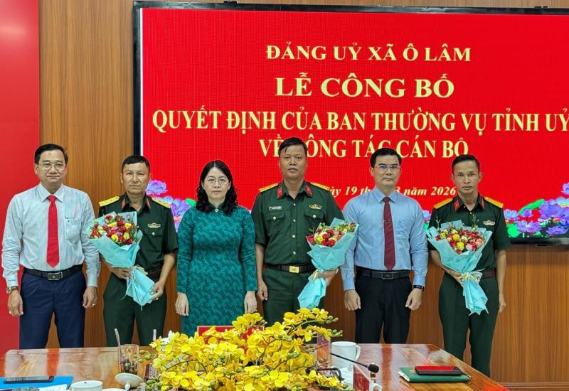 Sáng ngày 19/302026, Đảng ủy xã Ô Lâm đã long trọng tổ chức lễ công bố quyết định của Ban Thường vụ Tỉnh ủy về việc chỉ định bổ sung Ủy viên Ban Chấp hành, Ủy viên Ban Thường vụ Đảng ủy xã nhiệm kỳ 2025 - 2030 đối với các đồng chí Chỉ huy trưởng và Chỉ huy phó Ban Chỉ huy Quân sự xã. Tham dự buổi lễ có Bí thư Đảng ủy, Chủ tịch HĐND xã, Mai Thị The.