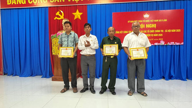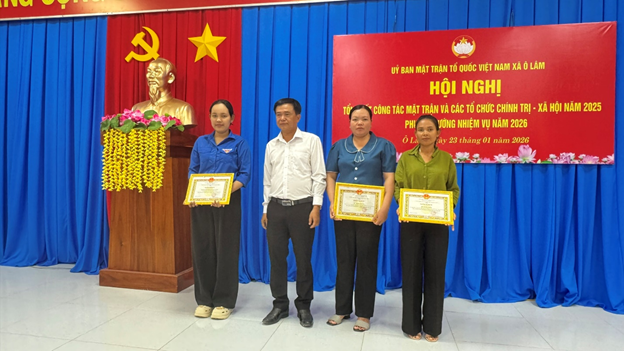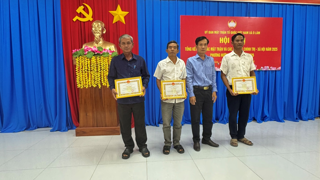 Dịp này 5 tập thể, 12 cá nhân có thành tích xuất sắc trong các phong trào thi đua do Mặt trận và các tổ chức chinh trị xã hội xã Ô Lâm phát động được tuyên dương, khen thưởng.