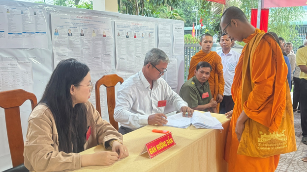 Đặc biệt, đối với địa bàn có đông đồng bào dân tộc Khmer sinh sống, Mặt trận Tổ quốc xã đã phối hợp với các ban ngành, đoàn thể và người có uy tín trong cộng đồng tăng cường vận động, tuyên truyền bằng nhiều hình thức phù hợp, giúp bà con hiểu rõ quyền lợi và trách nhiệm của mình, tích cực tham gia đi bầu cử.