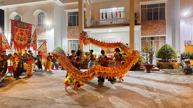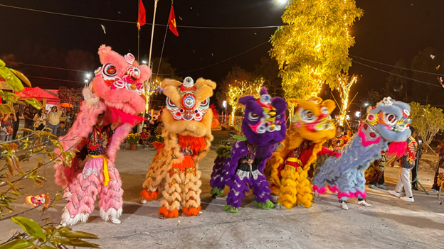 Những màn biểu diễn đặc sắc, sôi động với tiếng trống rộn ràng, các tiết mục lận sư chúc mừng, lân leo bàn, múa rồng, lân sư hái lộc đầu xuân… đã mang đến không khí náo nhiệt, rực rỡ sắc màu, góp phần làm phong phú đời sống văn hóa tinh thần của người dân địa phương.