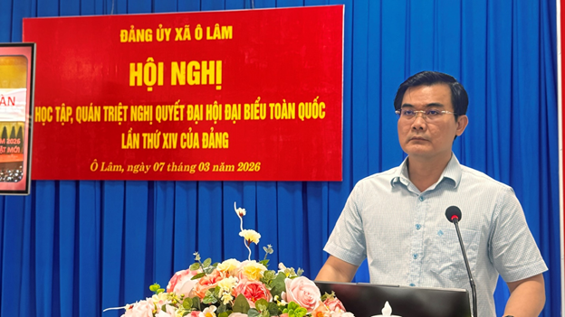 Từ ngày 4 đến ngày 7/3/2026, Ban Xây dựng Đảng xã Ô Lâm tổ chức 3 lớp nghiên cứu, học tập, quán triệt, tuyên truyền và triển khai thực hiện Nghị quyết Đại hội đại biểu toàn quốc lần thứ XIV của Đảng cho toàn thể cán bộ, đảng viên, công chức, viên chức trên địa bàn xã.
