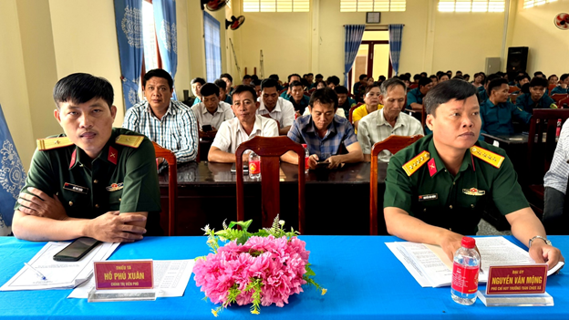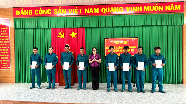 Tại buổi lễ, Ban Chỉ huy Quân sự xã công bố và trao các Quyết định kết nạp 66 công dân đủ điều kiện tham gia lực lượng dân quân mới, đảm bảo tiêu chuẩn về chính trị, phẩm chất đạo đức và sức khỏe. Quyết định công nhận hoàn thành nghĩa vụ cho 36 dân quân đã hoàn thành tốt nhiệm vụ trong thời gian phục vụ, góp phần tích cực vào công tác giữ gìn an ninh chính trị, trật tự an toàn xã hội tại địa phương. Đồng thời công bố các quyết định thành lập 2 trung đội dân quân, Quyết định giải thể các tổ binh chủng, Quyết định bổ nhiệm cán bộ dân quân.