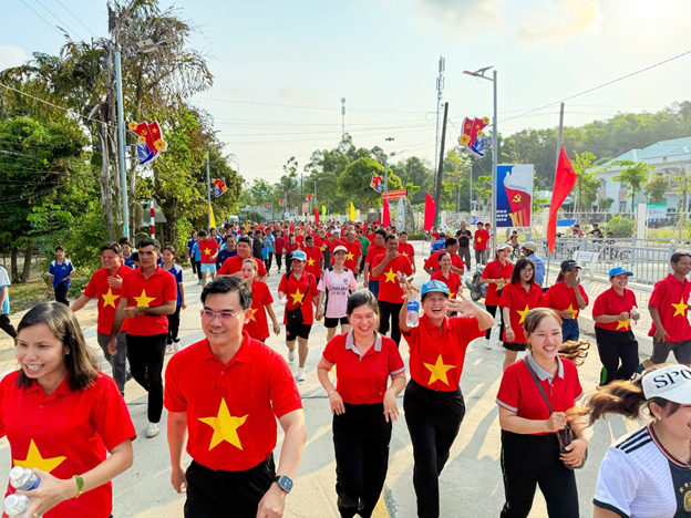 Đặc biệt, hình ảnh cán bộ, công chức, viên chức trong trang phục áo đỏ, sao vàng cùng nhau tham gia chạy với tổng cự ly 2 km mang ý nghĩa sâu sắc, thể hiện tinh thần đoàn kết, lòng yêu nước và niềm tự hào dân tộc. Đây không chỉ là hoạt động thể dục thể thao đơn thuần mà còn là thông điệp mạnh mẽ về ý chí, quyết tâm rèn luyện sức khỏe để phục vụ tốt nhiệm vụ được giao, góp phần xây dựng và bảo vệ Tổ quốc.