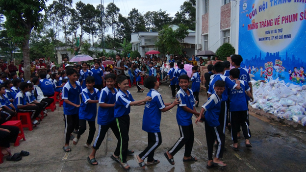 Các em được tham gia các trò chơi vận động có thưởng, thưởng thức các màn múa lân đặc sắc. Tại chương trình, lãnh đạo chính quyền địa phương, mạnh thường quân gửi những lời chúc mừng tết trung thu vui tươi, hạnh phúc và dặn dò động viên cố gắng vượt qua hoàn cảnh, học tập tốt, luôn là con ngoan trò giỏi, cháu ngoan Bác Hồ. Dịp này mạnh thường quân TP. Hồ Chí Minh cũng trao 100 phần quà cho bà con khmer thuộc diện hộ nghèo, cận nghèo, mỗi phần trị giá 300 nghìn đồng gồm gạo, mì gói, nhu yếu phẩm. Trao 300 phần quà cho các cháu thiếu nhi, mỗi phần gồm bánh sữa, lồng đèn. Tổng kinh phí thực hiện chương trình 75 triệu đồng.