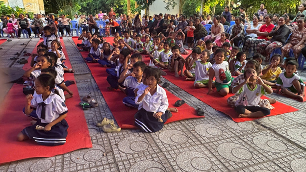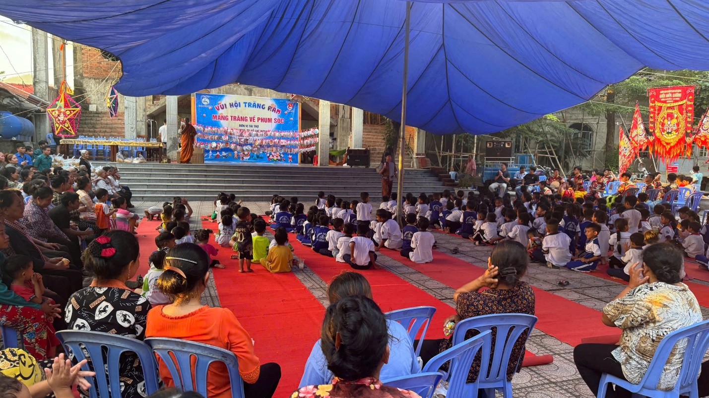 Các em được sinh hoạt tập thể tham gia các trò chơi có thưởng, thưởng thức các tiếc mục văn nghệ, màn múa lân đặc sắc. Đồng thời được phục vụ nước uống và thức ăn nhẹ miễn phí. Tại chương trình, mạnh thường quân và hòa thượng Chau Sơn Hy gửi những lời chúc mừng tết trung thu vui tươi, hạnh phúc và dặn dò động viên cố gắng vượt qua hoàn cảnh, học tập tốt, luôn là con ngoan trò giỏi, cháu ngoan Bác Hồ. Dịp này, các mạnh thường quân TP. Hồ Chí Minh cũng trao 100 phần quà cho bà con khmer có hoàn cảnh khó khăn, mỗi phần gồm gạo, và nhu yếu phẩm. Trao 300 phần quà cho các cháu thiếu nhi, mỗi phần trị giá 200 nghìn đồng gồm bánh sữa, lồng đèn, gấu bông.. Tổng kinh phí các phần quà là 75 triệu đồng.