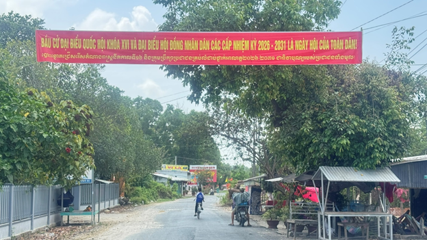 Trên các tuyến đường chính, khu dân cư và khu vực trung tâm xã, nhiều băng rôn, pano, áp phích tuyên truyền về cuộc bầu cử đã được treo, dựng trang trọng với nội dung ngắn gọn, dễ hiểu, thu hút sự quan tâm của người dân. Đặc biệt, tại các ấp có đông đồng bào dân tộc Khmer sinh sống, việc tuyên truyền được thực hiện đa dạng hình thức nhằm giúp bà con dễ dàng tiếp cận thông tin về cuộc bầu cử