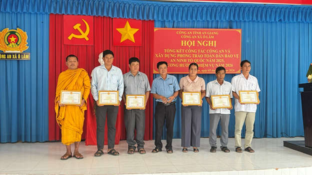Dịp này có 31 cá nhân được khen thưởng chiến sĩ thi đua cơ sở, chiến sĩ tiên tiến và công an xã Ô Lâm đạt danh hiện dơn vị quyết thắng trong phong trào thi đua Vì an ninh Tổ Quốc năm 2025. UBND xã Ô Lâm cũng khen thưởng cho 4 tập thể, 6 cá nhân có thành tích xuất sắc trong công tác xây dựng phong trào toàn dân bảo vệ an ninh tổ quốc và khen thưởng 9 cá nhân có thành tích xuất sắc trong công tác đấu tranh phòng chống tội phạm năm 2025.