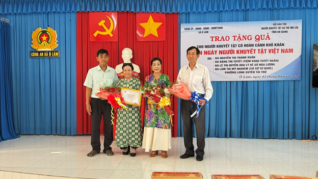 Hướng đến kỷ niệm Ngày Người khuyết tật Việt Nam (18/4), sáng ngày 2/4/2026, Hội Bảo trợ người khuyết tật và trẻ mồ côi tỉnh An Giang phối hợp với Đảng ủy, HĐND, UBND và Ủy ban MTTQ Việt Nam xã Ô Lâm tổ chức chương trình trao tặng quà cho người khuyết tật có hoàn cảnh khó khăn trên địa bàn xã.