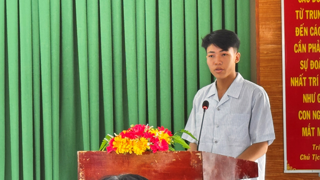 Phát biểu tại buổi lễ, Chủ tịch UBND xã Phan Thanh Lương ghi nhận, biểu dương tinh thần tình nguyện của các bạn trẻ, ân cần dặn dò các tân binh phải giữ vững bản lĩnh chính trị, chấp hành nghiêm kỷ luật và đoàn kết giúp đỡ lẫn nhau để xứng đáng với niềm tin yêu của quê hương.