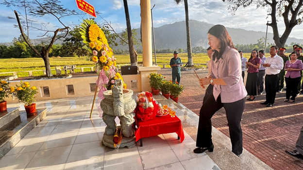 Đoàn cũng đến dâng hoa, dâng hương tại bia ghi danh liệt sĩ ấp Phước Lợi, ấp Ninh Thuận và Đền tưởng niệm liệt sĩ tại Khu di tích lịch sử cấp quốc gia Đồi Tức Dụp, nơi ghi dấu những chiến công oanh liệt của quân và dân ta trong kháng chiến chống Mỹ, với trận chiến huyền thoại 128 ngày đêm năm 1968 - 1969. Trước anh linh các anh hùng liệt sĩ, các đại biểu bày tỏ lòng biết ơn sâu sắc đối với sự hy sinh cao cả của các thế hệ cha anh, trong đó có nhiều anh hùng, liệt sĩ là người dân tộc Khmer đã ngã xuống vì độc lập, tự do của Tổ quốc.