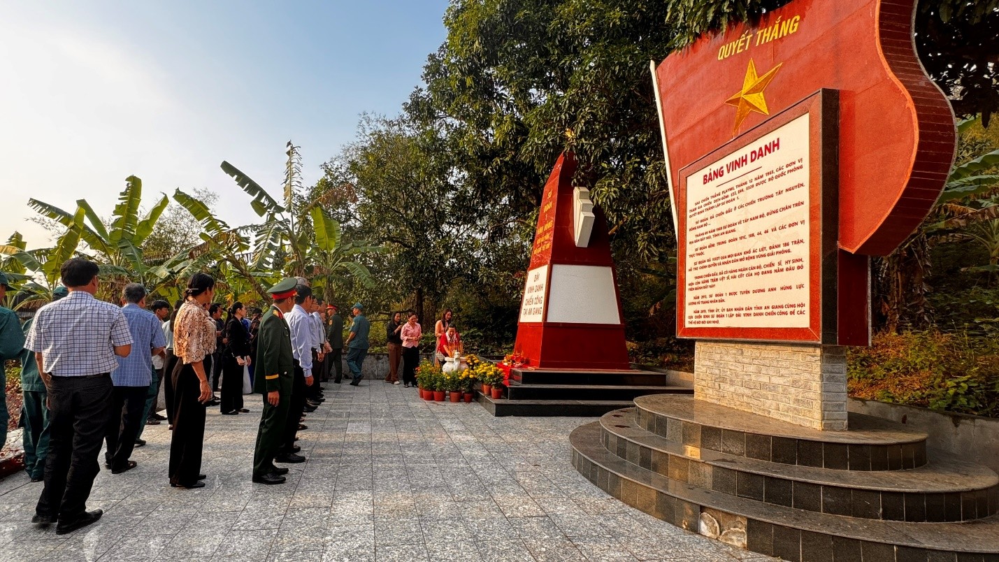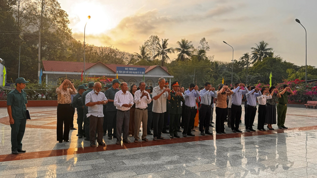 Trong không khí trang nghiêm, đoàn đã thành kính dâng hoa, dâng hương và dành phút mặc niệm tưởng nhớ công lao to lớn của các thế hệ đi trước, đặc biệt là cán bộ, chiến sĩ Sư đoàn 1 đã anh dũng chiến đấu bảo vệ vùng căn cứ Bảy Núi.